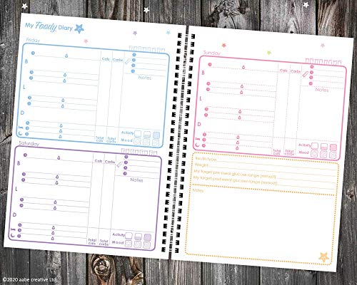 Suivez facilement vos aliments, calories consommées. Vous y trouverez une section de notes hebdomadaire et une colonne pour enregistrer votre taux/type d’insuline et le type de sucre que vous consommez. Vous pourrez aussi enregistrer votre poids facilement dans ce carnet. Vous avez entre vos main un carnet de suivi diabète complet qui vous suivra chaque jour de votre vie.