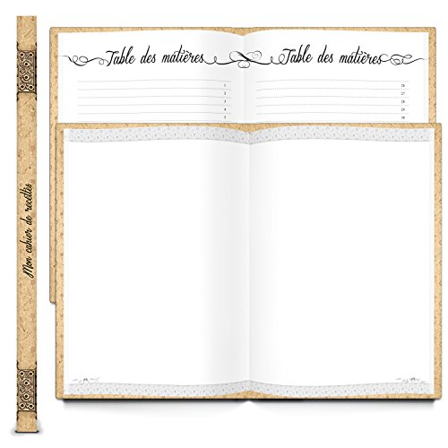 D’un style vintage, ce grand livre de recette vierge de qualité supérieure, personnalisable, est composé de 164 pages blanches numérotées, sans lignes ni carreaux et d’une table des matières à compléter au fur et à mesure, afin de retrouver facilement toutes vos recettes.