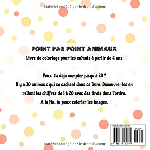 Peux-tu déjà compter jusqu’à 20 ? En te procurant ce livre de coloriage points à relier tu trouveras « 30 animaux » qui se cachent dans ce livre. Découvre-les animaux en reliant les chiffres de 1 à 20 avec des tirets dans l’ordre. A la fin, tu peux colorier les images. Premier puzzle amusant pour les petits : avec ce livre à colorier points à relier pour les enfants à partir de 4 ans, votre enfant est envoyé en safari et apprend à connaître la série de chiffres jusqu’à 20 de manière ludique.